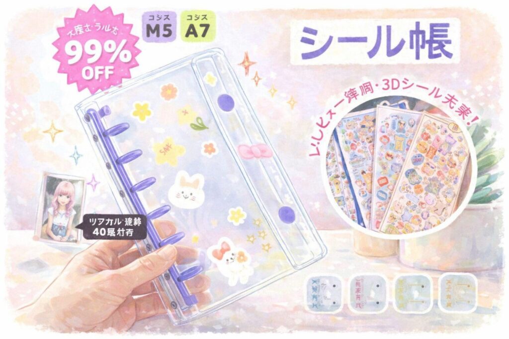 | 【楽天62冠★レビュー4.65以上1,440円〜 シール帳2個+リフィル60枚 NISHIZARC 正規品 】シール帳 A6 M5 A7 サイズ 推し活グッズ PVC バインダー A7サイズ クリア シールバインダー 透明 ダブルボタンデザイン 三つ折り構造 カラフル 推し活グッズ 防水 価格:650円~(税込、送料無料) (2026/1/12時点) |
